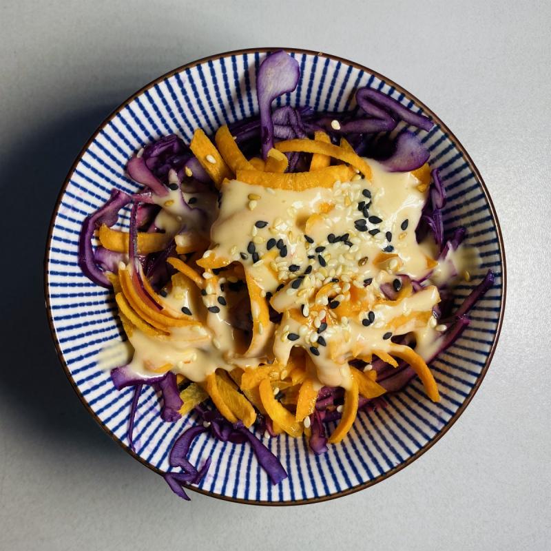 Orzeźwiające świeże warzywa z sezamem, limonką i odrobiną majonezu.