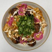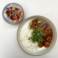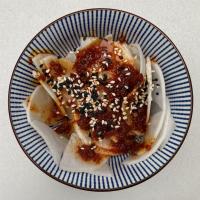 Podajemy z blanszowaną kapustą, tartą rzodkwią i dymką, oraz tofu i nerkowcem